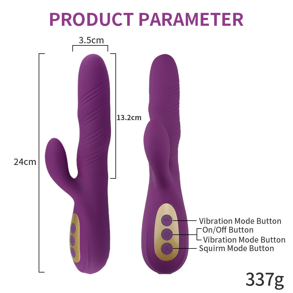 Style NO:SX-V102Material:Silicone+ABSSize:24(L)*3.5(D)cmNet Weight:337.00 GramFunction:10 Vibration Modes+4 Twist ModesCharging:Magnetic ChargingWaterproof:IPX7 Waterproof