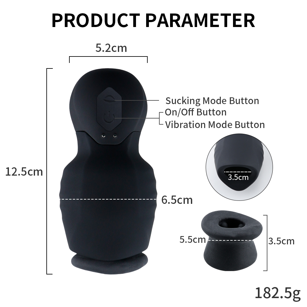 Style NO:SX-MC033Material:Silicone+TPE+ABSSize:12.5(L)*6.5(W)*3.5(D)cmNet Weight:183.00 GramFunction:7 Vibration Modes+7 Suction ModesCharging:Magnetic ChargingWaterproof:IPX7 Waterproof